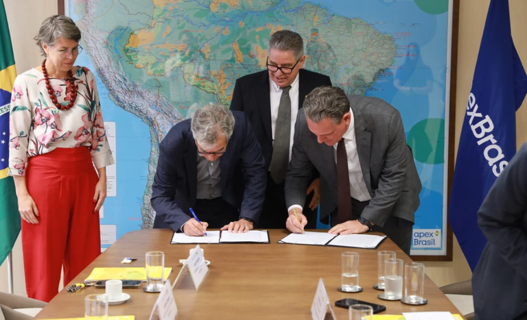 A assinatura do Memorando de Entendimento ocorreu na sede da ApexBrasil, em Brasília, na terça-feira, 23 de setembro de 2025. O documento foi firmado pelo presidente da ApexBrasil, Jorge Viana, e pelo presidente da Famato, Vilmondes Sebastião Tomain. O ministro da Agricultura e Pecuária, Carlos Fávaro, acompanhou a formalização como testemunha. O texto prevê a instalação de um escritório da agência em Cuiabá, no ambiente da Famato, com atuação voltada à internacionalização de empresas e à atração de capitais para projetos produtivos no estado.
