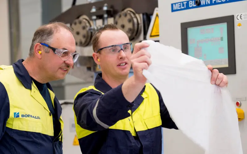 A Borealis, com uma experiência de 35 anos em inovações com polipropileno meltblown, tem adaptado suas operações em Linz para responder à demanda emergente por máscaras. A conversão de um ambiente de desenvolvimento puro para uma produção em escala menor foi feita rapidamente, permitindo que a empresa iniciasse a fabricação de rolos de tecidos de fibra fina adequados para máscaras faciais.