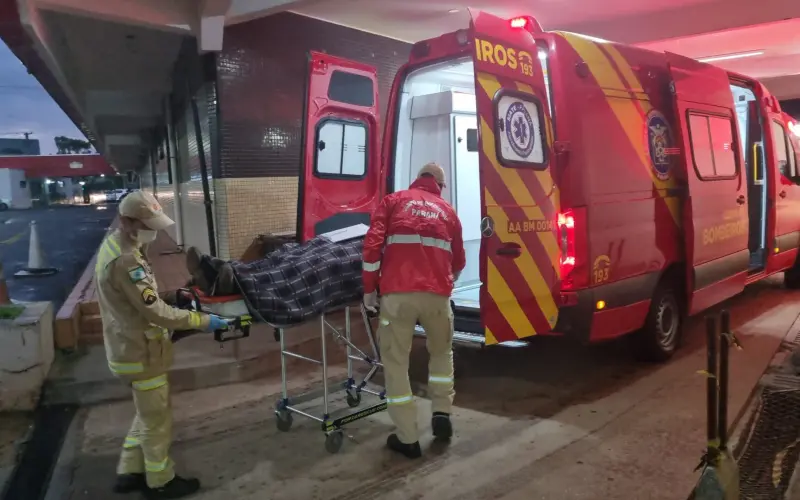 Socorristas do Siate prestaram atendimento a uma mulher que ficou ferida em uma obra localizada na Avenida Assunção próximo da rodoviária de Cascavel.