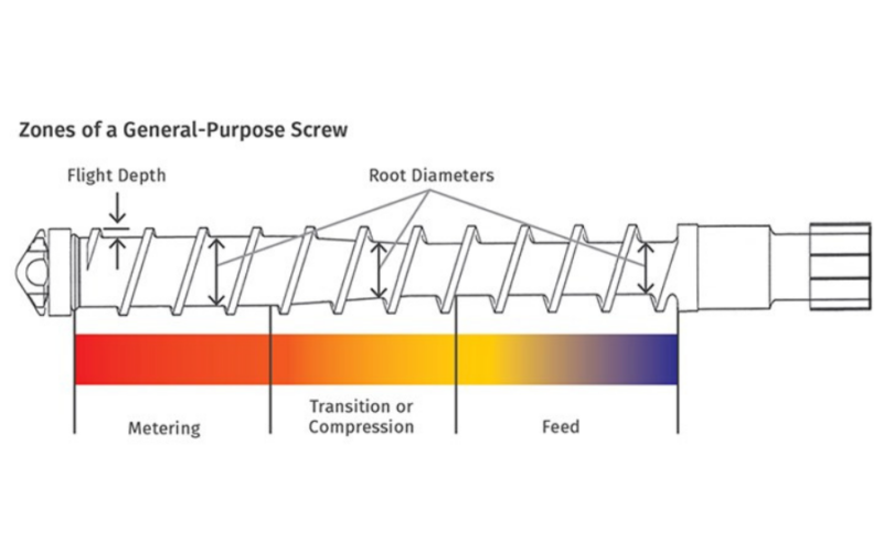 Quando falamos sobre o verdadeiro tempo de residência, devemos lembrar que essa métrica é definida como o tempo em que uma pelotinha está efetivamente no barril. O cálculo inicial ignora o material sendo transportado através das várias zonas do parafuso na máquina. Essa consideração é vital e pode ser realizada utilizando ferramentas que conectam a medição da quantidade de plástico entre as lâminas do parafuso.