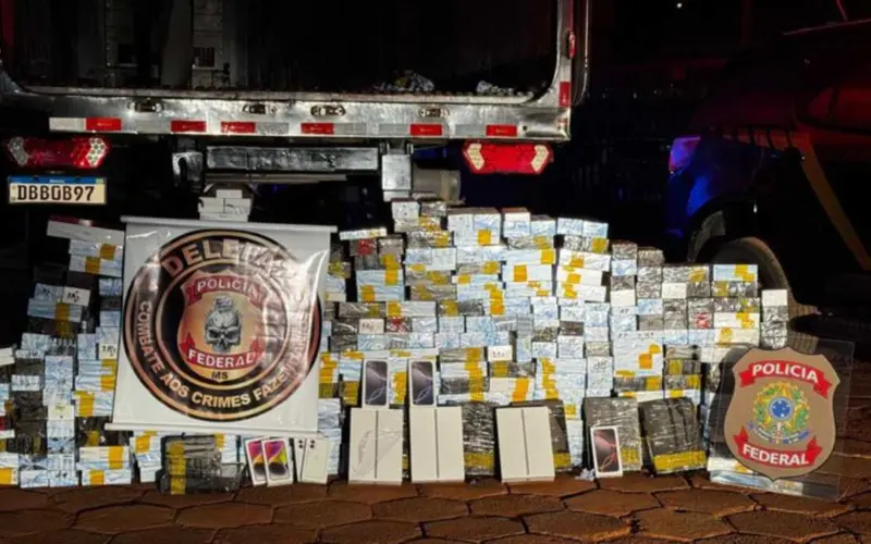 Policiais federais apreenderam uma grande carga de celulares escondida em um caminhão frigorífico durante uma fiscalização de rotina na BR 163. A ação, que ocorreu na tarde de ontem, resultou na apreensão de centenas de aparelhos de diversas marcas e modelos, configurando um possível crime de descaminho. A Polícia Federal (PF) investiga a origem e o destino da carga, bem como os responsáveis pelo transporte e pela tentativa de fraude.