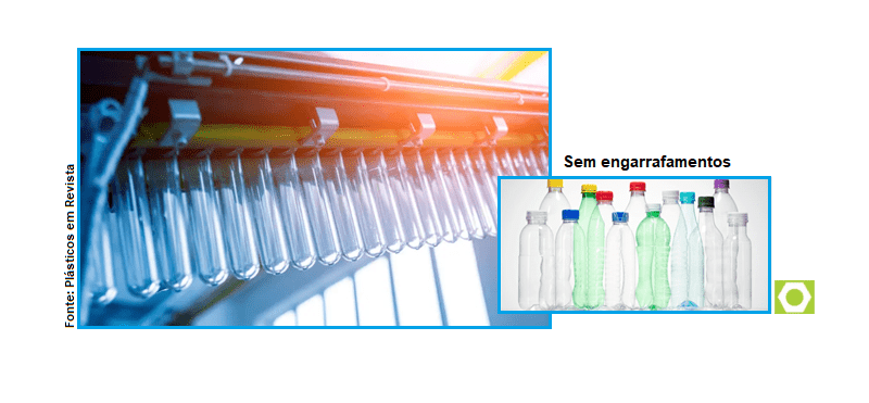 Na verdade, esse patamar já teve histórico superior a 100.000 t/a, mas vem caindo nos últimos anos para um patamar mais próximo de 70.000. Isso se explica por questões logísticas (o Brasil é um país com grande território) ou por acordos mundiais entre brand owners, fabricantes de pré-formas e produtores de resina.